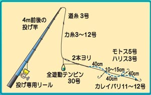 最初は神戸・須磨の海岸での投げのカレイ釣り。森永さんは仲間と3人で出かけましたが、この日は風が強くてカレイは28センチが1枚だけ。「天気が良ければ正月でもバンバン釣れますよ」と森永さん。
