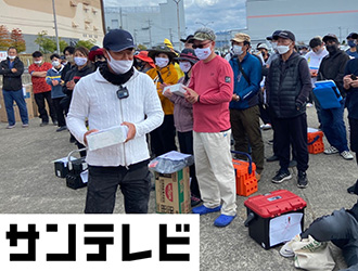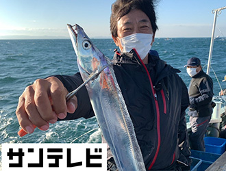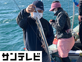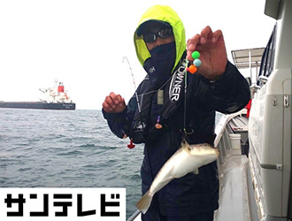 海新丸主催のオール阪神杯タチウオ釣り大会が大阪・泉佐野で2年ぶりに開催されました。阪神さん、今井浩次さん、吉本美咲アナの番組レギュラー3人に加えて、プロ野球解説者の田尾安志さん、永田まりさんも参加。今回はテンヤの部とジギングの部に分かれて1匹長寸を競います。釣り船7隻に一般公募の100人が乗り込み神戸沖に向かいました。この日は大潮で北東の風が10m以上吹き、タチウオ釣りには厳しいコンディションでしたが、皆さん優勝を目指して真剣な面持ちで竿を出します。各船とも数・形ともに振るわず検寸の結果、ジギングで110cmを釣り上げた男性が優勝しました。参加者には阪神さんたちが北海道で釣ったサケの石狩鍋が振る舞われたほか、じゃんけん大会なども行われ賑やかなイベントとなりました。