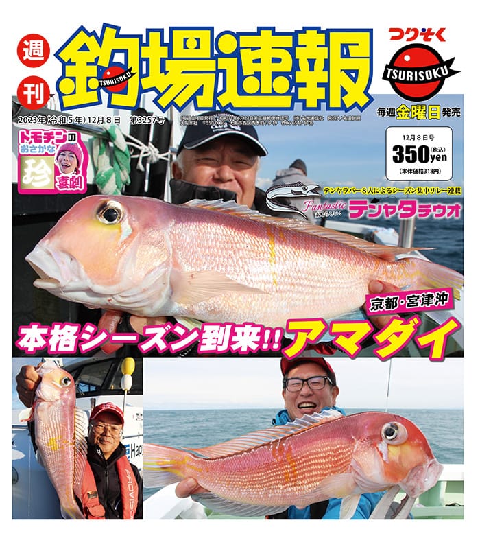京都・宮津沖ではアマダイ、オニカサゴが好調をキープ。どちらも45cm前後の大型まじりで、よい人は2ケタ前後の数釣りが楽しめます。