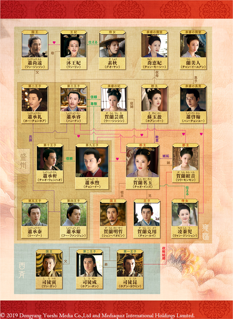 盛州・西斉・雍臨の三国が北方で勢力を争う梁の末期。雍臨の郡主・賀蘭茗玉(がらんめいぎょく)は盛州の第九王子・蕭承煦(しょうしょうく)と運命的に出会い恋に落ちる。だが、蕭承煦に王位を継がせるという盛州王の遺言をもみ消して王に即位した第三王子・蕭承睿(しょうしょうえい)が、賀蘭茗玉を見初めて彼女を側妃にと望む。折しも戦場からは蕭承煦の訃報が届き、兄は陰謀で殺されたと訴える第十王子・蕭承軒(しょうしょうけん)を死罪から救うため、賀蘭茗玉は心ならずも蕭承睿に嫁ぐ決心をするが…。