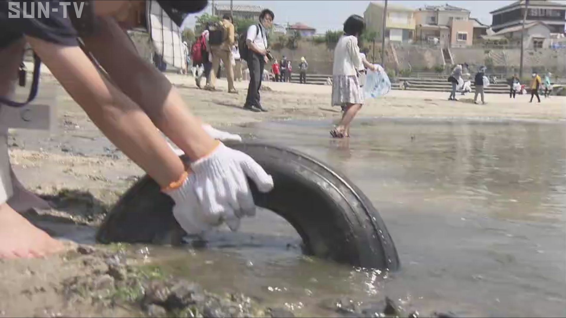 この活動は県や明石市などでつくる「ひょうご豊かな海発信プロジェクト協議会」などが主催したもので明石市の江井ヶ島海岸では海岸の清掃を全国に呼び掛ける旗上げ式が行われました。