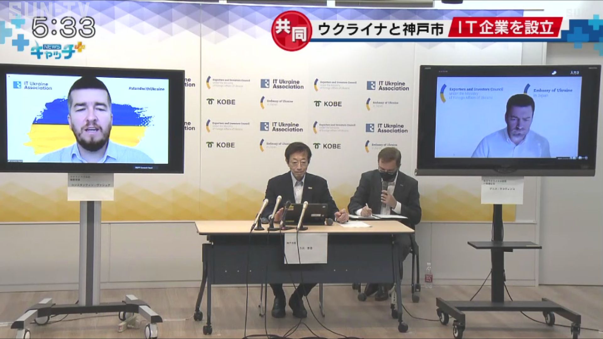 神戸市は8月10日、ウクライナ大使館などと共同で会見を開き、ウクライナのソフトウェア開発会社が日本国内で初めて神戸市に日本法人を開設したと発表しました。