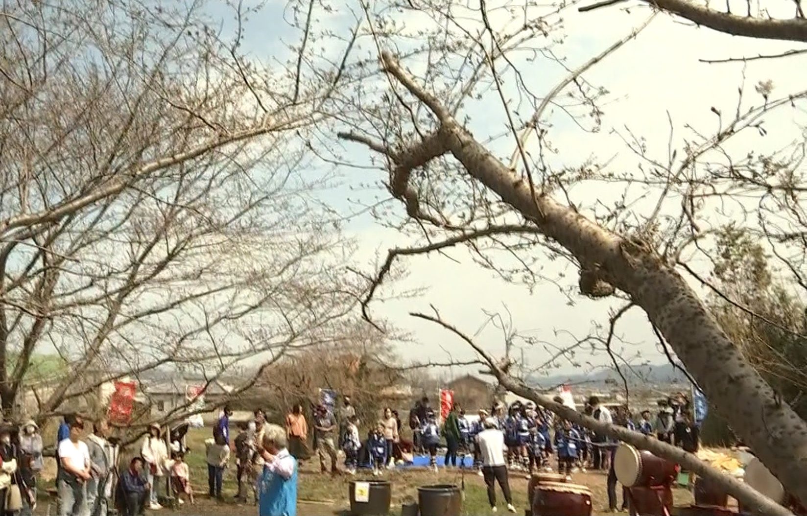 2024年はサクラの開花が遅く、満開まではまだ時間がかかりそうだということですが、小学生の和太鼓グループ「和太鼓志童」が演奏し、イベントを盛り上げたほか、地元のヨモギを使った「志知城餅」100個が配られ、訪れた人は春の訪れを感じていました。