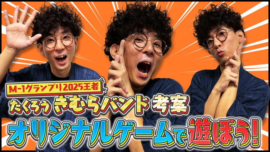 M-1グランプリ2025王者、たくろうのきむらバンド登場!本人持ち込みのオリジナルゲームでワチャラチャメンバーと大はしゃぎ!お題の単語の文字数でストライクを狙う「ワードボウリング」や、話題のアイドルをテーマにした「フルーツキューティーチューン」など、完成度が高すぎるゲームの数々で一同収録を忘れて盛り上がる~!