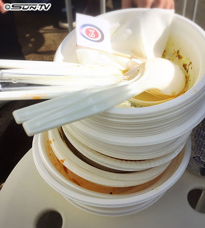 ↑部員たちのお腹が満たされたあとに残る、山積みのカレー皿。笑
