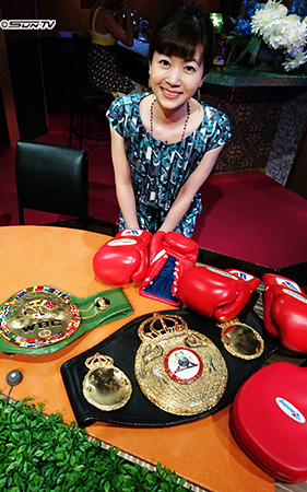 スタジオに贅沢にもチャンピオンベルトやグローブを持ってきて頂きましたが、