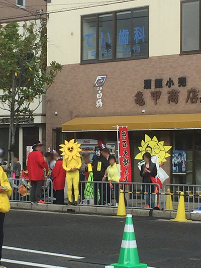 リポート担当地点の須磨区では、沿道にこんな応援団が。笑