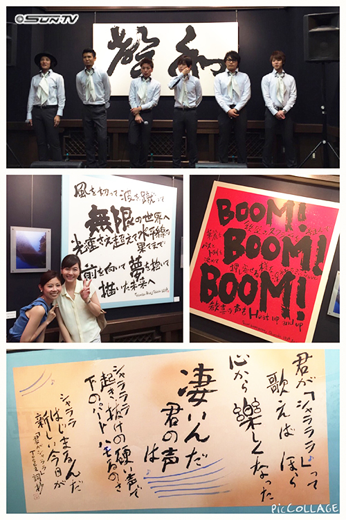 のエンディングテーマも書になっていて、その前で、万実ちゃんとパチリ
