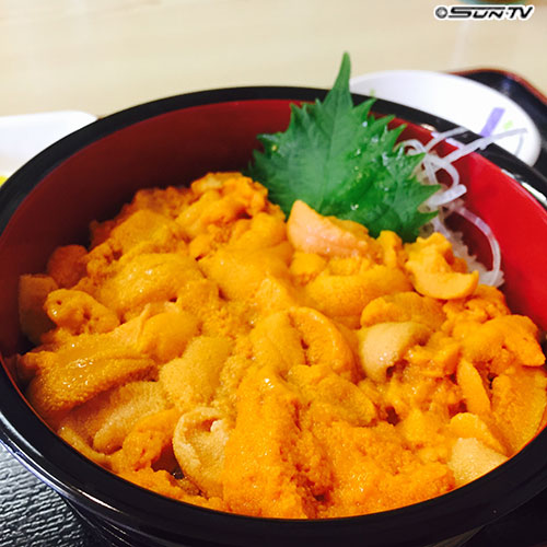 ↑写真は、積丹町で頂いた赤ばふんウニ