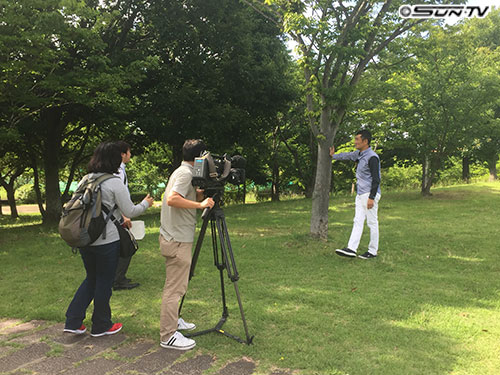 仕事中のデイリースポーツ道辻歩記者に、取材の仕方、記事の作り方、