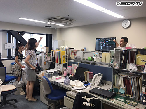 サンテレビ社内も一丸となって、橋本アナを応援!