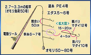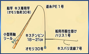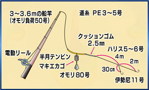朝4時半に出船、印南沖のポイントで、アンカーを下ろしてスタート。天秤仕掛けで、エサはオキアミ。