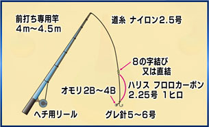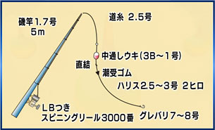 今回は、前打ち釣り。パイプムシをエサに、テトラのポイントを転々と探りながら狙う。