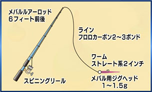 ジグヘッドリグ(ワーム)で狙い始めると、日没まではガシラを次々にヒット、日没後からは最大25cmを含むメバルをコンスタントにゲットしていく。