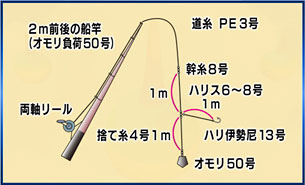 朝8時半すぎに出船、アンカーを掛けて、胴突き3本針でウタセエビをエサに狙う。