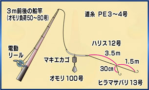 今井浩次が、和歌山県・柏の船でメジロを釣る。 朝5時前に出船。日の岬沖のポイントで、アンカーを掛けて船を固定し、テンビン仕掛けで狙う。7時を回って時合に入ったのか、メジロ(71~75cm)が次々に上がり、納得の釣果で終わる。