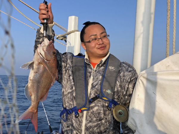 大相撲大阪場所終わりで、毎年恒例の尾上部屋釣り会を、今年は和歌山県椿で行いました。狙いはマダイ。尾上部屋から、親方に富士の輝、竜虎、関西後援会から中西会長ほか2名、番組から阪神さん、今井さん、近藤さんが参加しました。好天には恵まれましたが、最近よくある「潮がほとんど動かない」状況で、朝の時合も今一つ。ボウズの人はなく、イサギはよく釣れましたが、マダイの釣果はちょっと残念な結果に終わりました。そこで番組からの3人は、午後便に依願出船。69cmを含めて、50cmクラスのマダイを2ケタ釣りあげ、留飲を下げました。