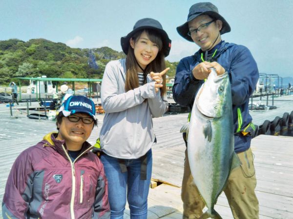 オーナーばりの大東さんら3名が、和歌山県広川町の海上釣り堀で、大物釣りを楽しみます。タナ取りをした後、まずは練り餌でマダイを狙いますが喰いが悪く、ささみ、イワシに変更。すると、マダイやシマアジが、連続ヒット。続いて、エサを活アジ・イワシにかえて青物を狙えば、面白いようにメジロがヒットします。最後は釣り堀初心者の女性スタッフが15分の格闘の末、見事に90cmオーバーのブリを、釣り上げました。