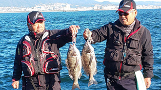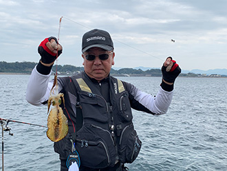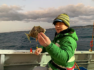 「エサ取り名人」の愛称で親しまれているカワハギ。微妙なアタリと日によって変わるヒットパターンなどゲーム性が高く食べて美味しいことから釣り人の間でも人気が高い魚です。多くの釣り人で賑わうなか、平田善政さんが仲間と一緒に三重・国崎沖でカワハギ釣りを行いました。同行した谷口孝成さんが入竿直ぐに3匹を連続ヒットで爆釣の気配十分。しかしこの日は10m近い強風とそれに伴うウネリでアタリが取りにくくカワハギ釣りには悪条件が重なります。それでも針をこまめに変えたり、誘い方に変化をつけると次第に釣れ始め平田さんにも笑顔がこぼれます。結局平田さんはツ抜け手前で納竿しましたが、満足の釣行だったようです。