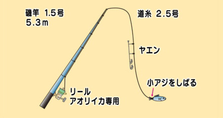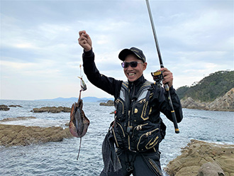 あおり天翔会の池田義正会長がメンバーの池田翔弥さん、吉田和也さんと和歌山県みなべの磯でヤエンを使ってアオリイカを釣ります。この日はうねりが強くアオリイカの気配はあるもののエサのアジを抱くところまではいかず苦戦を強いられます。昼前に吉田さんのリールのからラインが出てヤエンを投入しますが、取り込み寸前にもう1杯のアオリイカも同じエサを抱き始めて残念ながら2杯ともバラシてしまいます。その後は潮が動き始め3人同時にアオリイカが乗り吉田さんが16cm、翔弥さんが17cm、池田さんが18.3cmとトリプルGETで溜飲を下げます。その後もポツポツと釣れ笑顔で納竿しました。皆さんも、伝統漁法の「ヤエン釣り」でイカを引き寄せるスリルを体験してみてください。