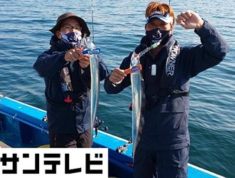 子供のころ船酔いで散々な目に合ってから船釣りを避けてきた高橋さんですが、先生役のオーナーばりスタッフの大東哲也さんから勝負を挑まれて意を決しての人生初となるタチウオテンヤに挑戦しました。この日は晴天で波も穏やかな釣り日和。先ずは大東さんからエサの付け方や電動リールの使い方、タチウオの誘い方などのレクチャーを受けて実釣開始。釣り始めは微妙なアタリが判らず苦戦しますが、そこはアユ釣りの名手、徐々にアタリを捉え始めてヒットを連発し大東さんを焦らします。結局数は同数ながら長寸で大東さんを圧倒して高橋さんの大勝利となりました。初心者でも十分楽しめるタチウオテンヤ釣り、シーズン後半に入りましたがまだまだ楽しめますよ!