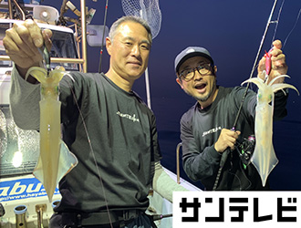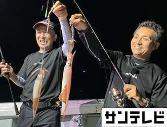 初夏から晩秋にかけて甘みが強く濃厚な味わいが人気のケンサキイカ。このケンサキイカは日本各地で狙えることから地方名が多く、山陰ではシロイカ、和歌山ではアカイカ、関東ではマルイカとも呼ばれています。今回、大塩さんたちはメッカの一つ鳥取・酒津沖で40cmを超える大剣GTEを目指します。陽があるうちのシロイカはボトム付近にいることからオモリグで広範囲に探ると、大塩さんが小ぶりながら本命のシロイカを釣り上げます。陽が落ちると集魚灯が灯り小魚が船の周りに集まりますが、シロイカはボトム付近でポツポツと釣れる程度でラッシュまでには至りません。そんななか群れが来たのか船中全員にアタリがあり笑顔を見せた後、大塩さんにビッグチャンス到来。慎重に取り込みサイズを測ると42cmの大剣サイズで笑顔をみせます。この日はシロイカのご機嫌が少し斜めで、数釣りは出来ませんでしたが、梅雨入り後は数・型ともに期待が持てるようです。