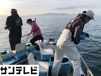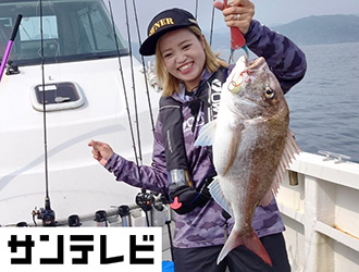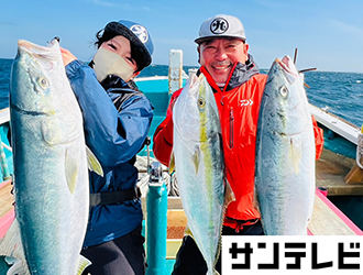 関西の船釣り全般に精通している立野さんと釣友たちに加えて、年間100目を目指している番組アシスタントの片原恵麻さんも参戦。ポイントでは初夏の麦わらイサギには少し早いことからギガアジと呼ばれる40cmクラスのアジをメインに五目の魚種を狙います。すると速攻で立野さん、片原さんがアジをGET。中盤にはアジを狙った青物の猛攻に会いますが、立野さんはハリスを太くして逆に青物狙いに変更してブリやメジロを釣り上げ船中お祭り騒ぎ。結局イサギ、サクラダイ、ガシラを追加して見事五目達成して竿を納めました。
