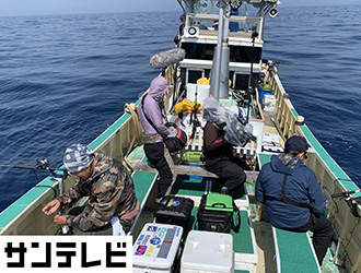 引きの楽しさと食べて美味しいことから人気の釣り物「オニカサゴ」ですが、なかなか釣果に恵まれない阪神さんに気持ち良く釣ってもらおうと、沖中さんご用達の三重は南伊勢の釣り船を仕立てます。この日は天気も良くベタナギで絶好の釣り日和。いつもはスロースターターの阪神さんですが、いきなりオニカサゴをGETすると続けざまにナイスサイズを釣り上げて船中が活気づきます。負けじと近藤さんもナイスサイズの連掛け、沖中さんは47cmのビッグサイズを釣り上げて満面の笑み。