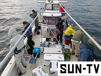 水深200m前後の中深海に生息するクロムツを狙おうと印南港を出船した一行ですが、ポイントでは風が強く吹き波も高く立っているのがやっとの状況で、ジグが着底してもアタリがなかなか分かりません。それでも船中ではクロムツ、アカムツがポツポツと釣れます。酒井さんはアタリを明確にするためジグを重くしてスローピッチで誘うと見事クロムツが掛かり慎重に取り込んでようやく笑顔を見せます。その後もラッシュはありませんでしたが満足な釣行となりました。最悪な状況の中でジグの種類や釣り方をどんどん変えて釣る酒井さんの釣法に注目です。