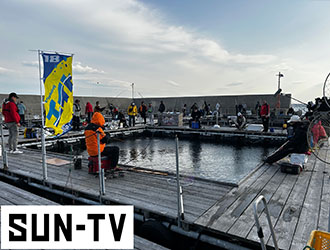 大阪市西成区で居酒屋を営む石丸さんの釣り大会に、関西の海上釣り堀でコンビ結成50年のイベントを企画しているオール阪神が参加して総勢100人の規模となったほか、大相撲の大阪場所を終えた尾上部屋の尾上圭志親方と富士の輝関も参加して大会に華を添えました。この日は風が強く冬に逆戻りしたような寒さでしたが、石丸さんと阪神さんのイカダには尾上親方と富士関も竿を出し朝一からマダイを釣り上げて笑顔を見せていました。特に阪神さんは絶好調でマダイのほかメジロやマハタもGETして終始ご機嫌。一方の石丸さんは釣りもそこそこに各イカダを回って参加者の様子を見ながら釣れるようにアドバイスをしていました。大会参加者は釣果にも恵まれて楽しい一日を満喫していました。