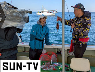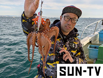 5月1日の解禁日を待ちかねたように多くのタコ釣りファンが明石沖で竿を出しています。今年は冬の最強寒波の影響か個体数が少なく釣果も微妙なラインで推移しているとの事で、渋いなかでもしっかりと結果を残せるコツを和田さんに伝授していただきます。明石の船タコ釣りが初めての片原恵麻さんも、エギにタコが抱きついた感触やアワセのタイミングなどを教えてもらいながら、しっかりとタコをGETします。和田さんも渋いなか流石のテクニックでタコを釣り上げて竿を納めました。明石沖のタコは水温が上がってくると数・型ともに期待が持てるということです。