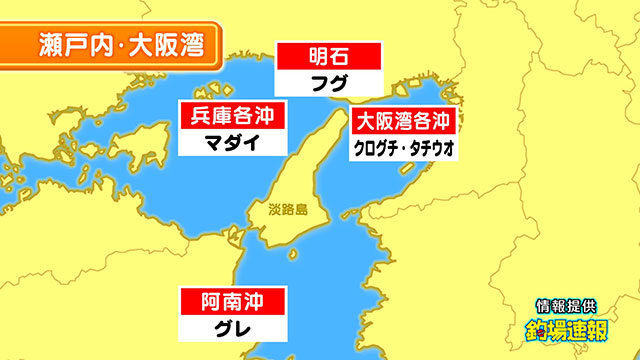 兵庫・姫路発のサビキマダイがコンスタントです。時合にはマダイのトリプルやダブルもあり、今後も期待十分です。明石発のフグ釣りも引き続き好調で、よい人2ケタ。釣ってよし、食べてよしの好敵手。まだ挑戦していない人もぜひチャレンジを!