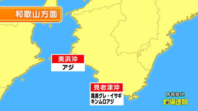 湯浅の磯ではフカセ釣りでグレが釣れています。水温が下がりきる今がチャンスです!紀北エリアでは、シロアマダイにカワハギ、タイラバでマダイと、さまざまな釣りが盛り上がっています。串本沖~浦神沖では、キハダマグロ60kg超えに90kg超えのメバチマグロが登場しました!