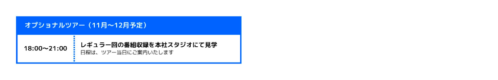 ツアー後には、オプショナルツアーとしてビッグフィッシングのスタジオ収録見学にもご招待いたします!