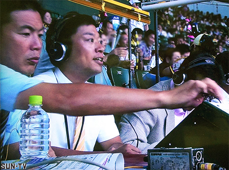 放送席の位置からネクストバッターズサークルが見えにくい球場もあります…。どことは言いませんが、その場合は身体を必死にねじらせたり、どんな体制でも見えない場合はカメラさんにサポートしていただいたりしています。ちなみに甲子園球場はとても見やすい球場です。