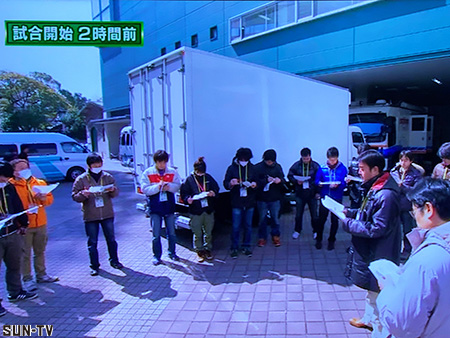 試合はいつどんな展開になるかわかりませんので、急に何かが起こったときにどうするか、注目選手が出てきたときはこういう演出をしたい、など、あらかじめ伝えておくと全員で一丸となって同じ方向を向けるからです。中継車Dを行うときはここを大事にしたいと考えています。