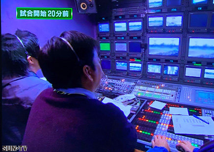 解説者さんとの打ち合わせも終え、いよいよそれぞれが持ち場へ。最終的に音声のチェックを、本番のアナウンサーと解説者さんの声で行います。そして本番へ!