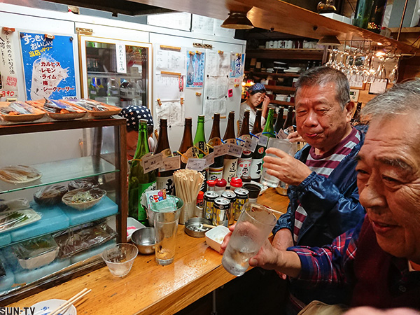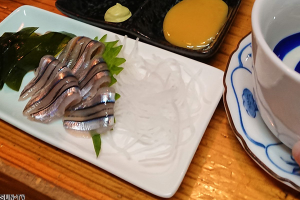 ビールの次は日本酒ということでカメラの福田さんは辛丹波、筆者は桜正宗を常温で飲むことにする。肴は目の前のガラスケースの中にある”きびなごの刺身”を選んだ。日本酒に刺身、ベストチョイスと思う。