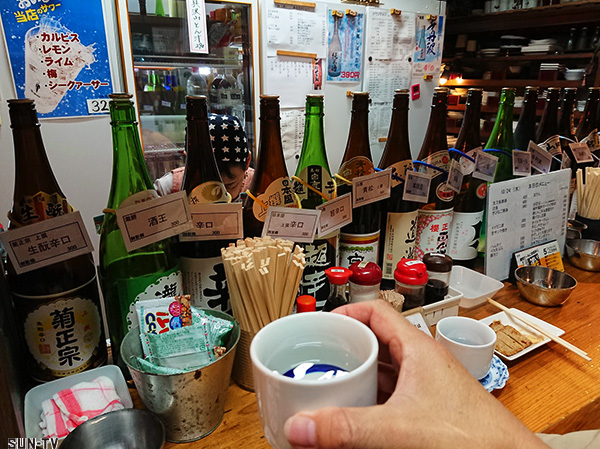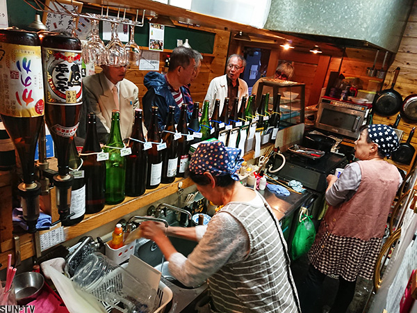 朝から大阪の西成まで飲みに行っていた常連さんに美よ志の魅力を聞いてみた。「1番目は酒の品揃えがいい。2番目は安い。3番目はお母さんたち」と絶賛した。狭い空間だが、ええ味わい。お母さん達の顔も、いい味わいですばらしい。