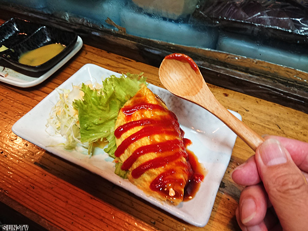 福田さんが撮影で忙しくしている間に筆者はハイボールと牛ミンチオムレツを追加。オムレツなどは注文の都度、お母さんたちが調理してくれるので熱々でうまい。