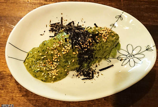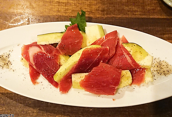 友人が来てくれたのでビールが進む。もう3杯はお代わりしただろうか。和食の板前さんとフレンチのシェフが腕を競うおいしいアテを追加しよう。刺身三種盛り、アボカドスライス、鯛のカルパッチョと立て続けに注文、どれもおいしい。