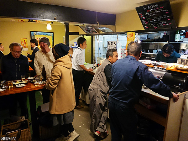 店内はテーブルが2つにカウンターが3ヶ所あります。午後5時に開店しますが仕事帰りのサラリーマンですぐいっぱいになるようだ。先代の店では土曜定休にしていたが、それはもったいないと土曜日も午後5時から開けるようにしたそうである。