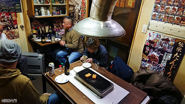 取材日は冬の風が強く寒い日だった。炭火の温りを囲んで酒を酌み交わす光景に角打ちの良さを再発見した。18杯目の榊山商店のところで書いたことを採録する。
