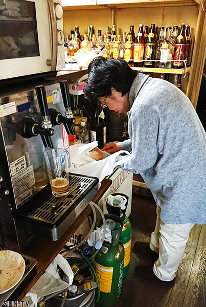 まずはテーブル席にてサッポロラガー赤星で乾杯し、取材開始である。時計を見れば午後5時前、やがてお客さんが増え始める。ついには普段物置のはずのカウンターも埋まったのであった。