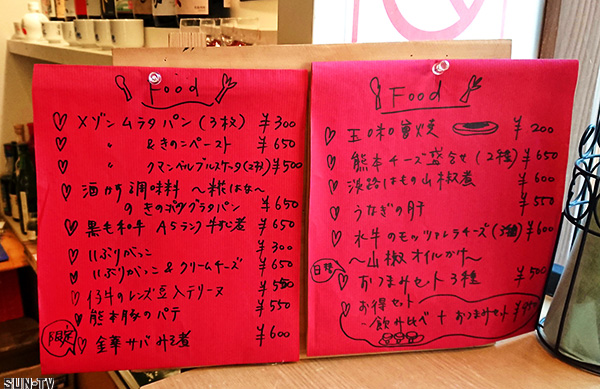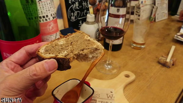 立ち飲みコーナーにはフードメニューが貼ってあるのだが、これがまた魅力的な品々である。例えば、メゾンムラタ(*)のパン&きのこペースト、酒かす調味料~糀はな~きのこパワグラタパン、黒毛和牛A5ランク牛すじ煮と言った具合である。どれを選んでいいかわからない場合は、おつまみセット3種がよいかもしれない。あるいは料理人ではないが、料理の研究をされている奥様に相談するのがベターと思う。