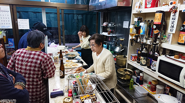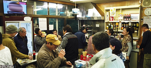 取材の日はグループで来られたお客さんが多かった。その中には普通に女性客が混じっており、1人で来られた方はカウンターで飲んでいたようだ。5時半にはほぼ満杯状態となり、よく繁盛しているものだと感心する。