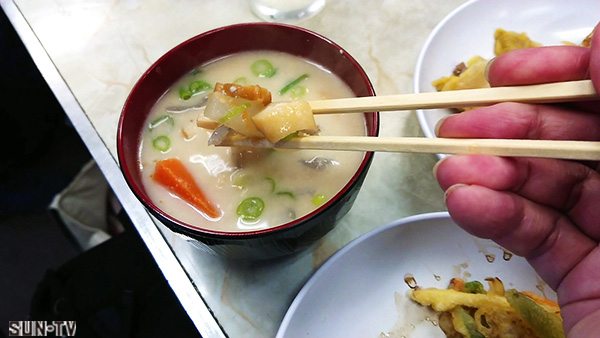 そしてこの冬初めての”かす汁”が体を温めてくれた。酒粕は看板にあった日本盛だろうかと頭を悩ませたが、そんなことはどうでも良くて「うまかったらええ」という焼き鳥一平(*)の親父さんの声が聞こえた気がした。福田さんは焼酎の水割りも注文したようだった。酒屋だから酒は売るほどにある。加えてうまいアテが豊富にあるのが人気の秘訣と言えようか。
