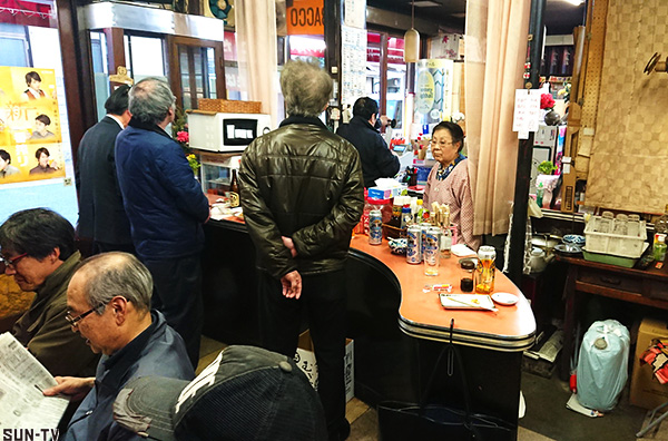 お客さんの話を聞いている間にも人が増え、この日はおっちゃん達に混じって女性客もちらほら。そう、材木酒店は和気あいあいとした雰囲気なので入りやすく、初めての客にも優しい。だから女性客が立ち寄ることも少なくないのであろう。