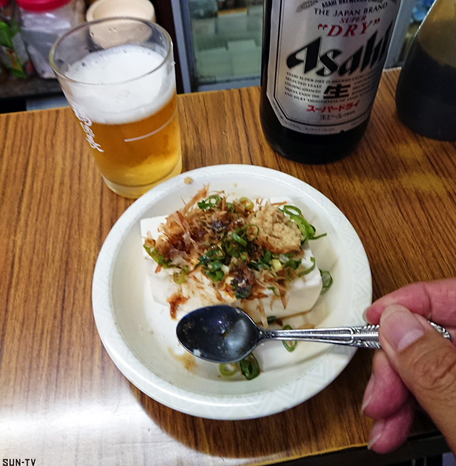 今回、ここでもビールをもらったが、日本酒(銘柄不詳)を追加した。歳のせいか、酔いが回るのが極めて早いと実感。ほどほどに。