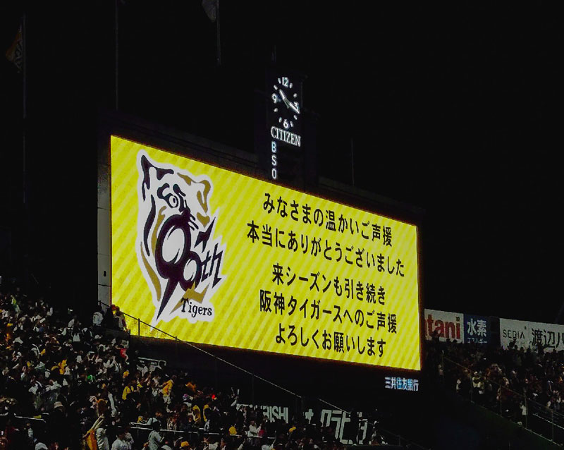 22時を超え、鳴り物がなくなってもファンの応援は響き続けた。